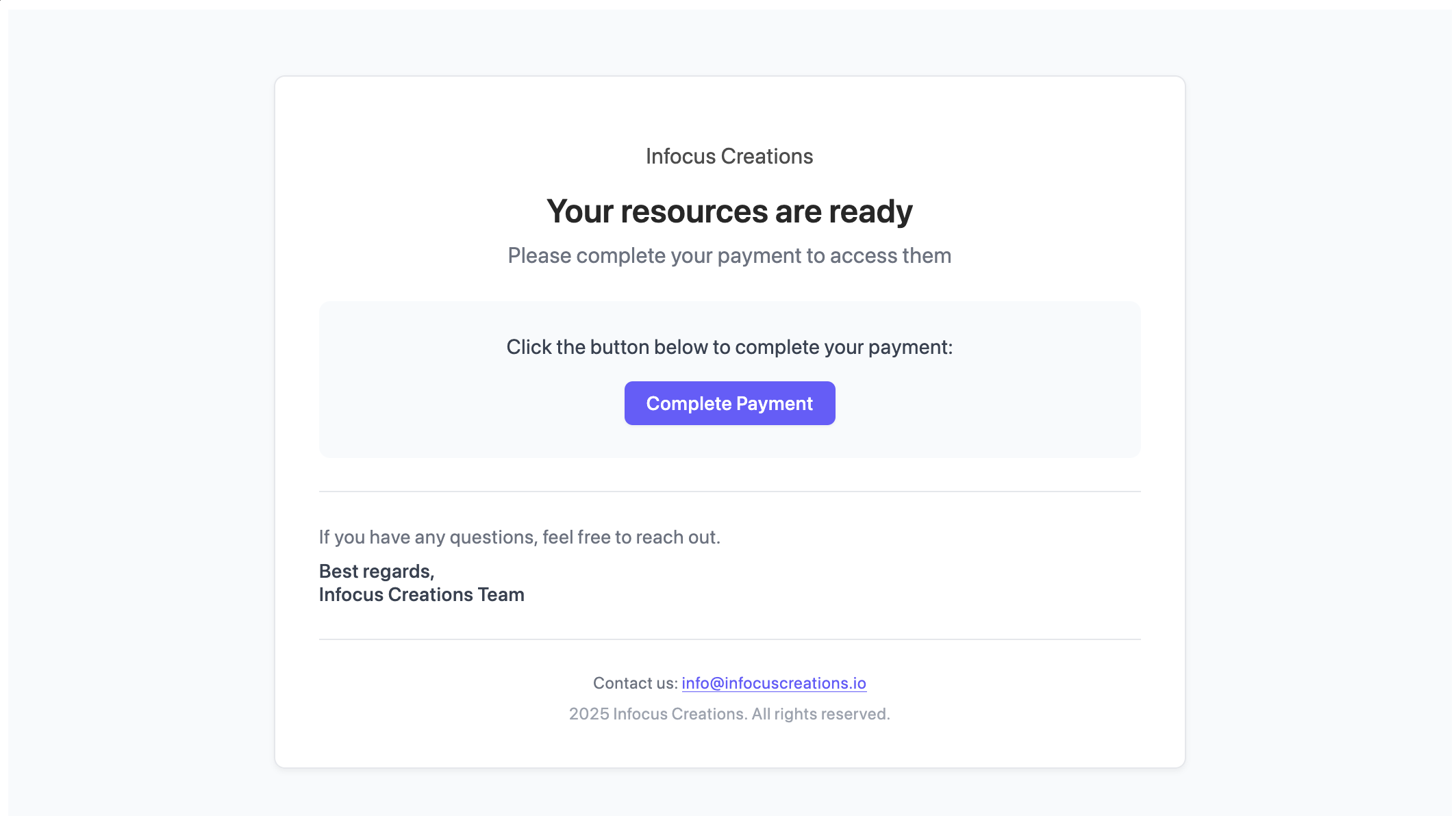 When a customer pays, they get their resources immediately. No delays, no manual intervention.