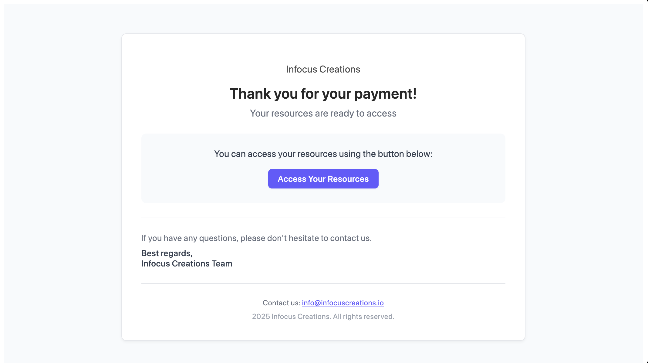 Why this matters: A customer who pays and gets instant access is happy. A customer who pays and waits is anxious. This eliminates that anxiety entirely.